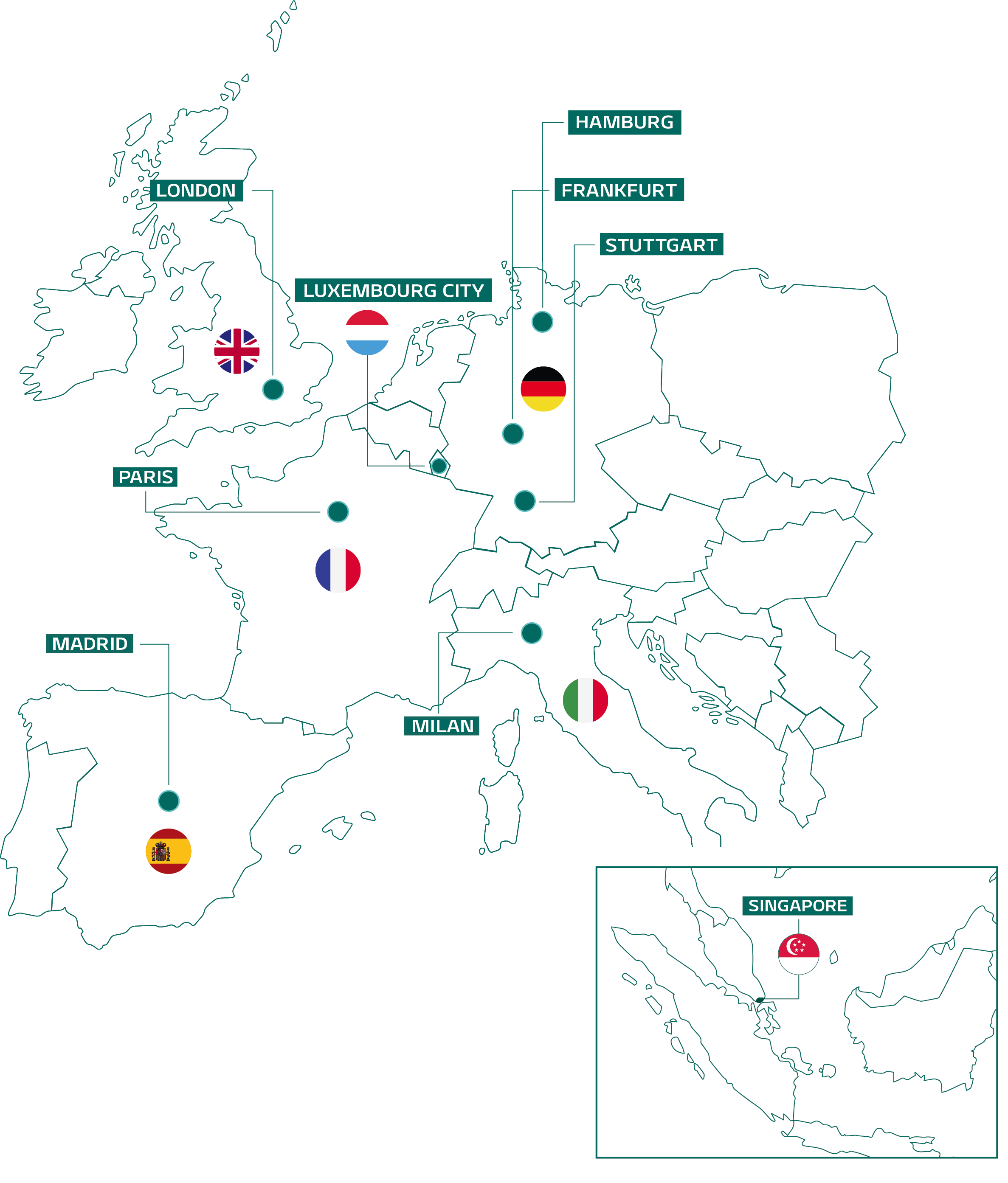 We are present in France, Germany, Italy, Spain, Luxembourg, the UK, and Singapore through our various entities. Our goal is to offer real estate investment solutions that take local specificities into account and to support our clients closely in their needs and financial objectives.